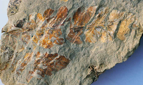 Минерализованные листья рахифиллума Rhachiphyllum wangenheimii (Геолого-минералогический музей СамГТУ)