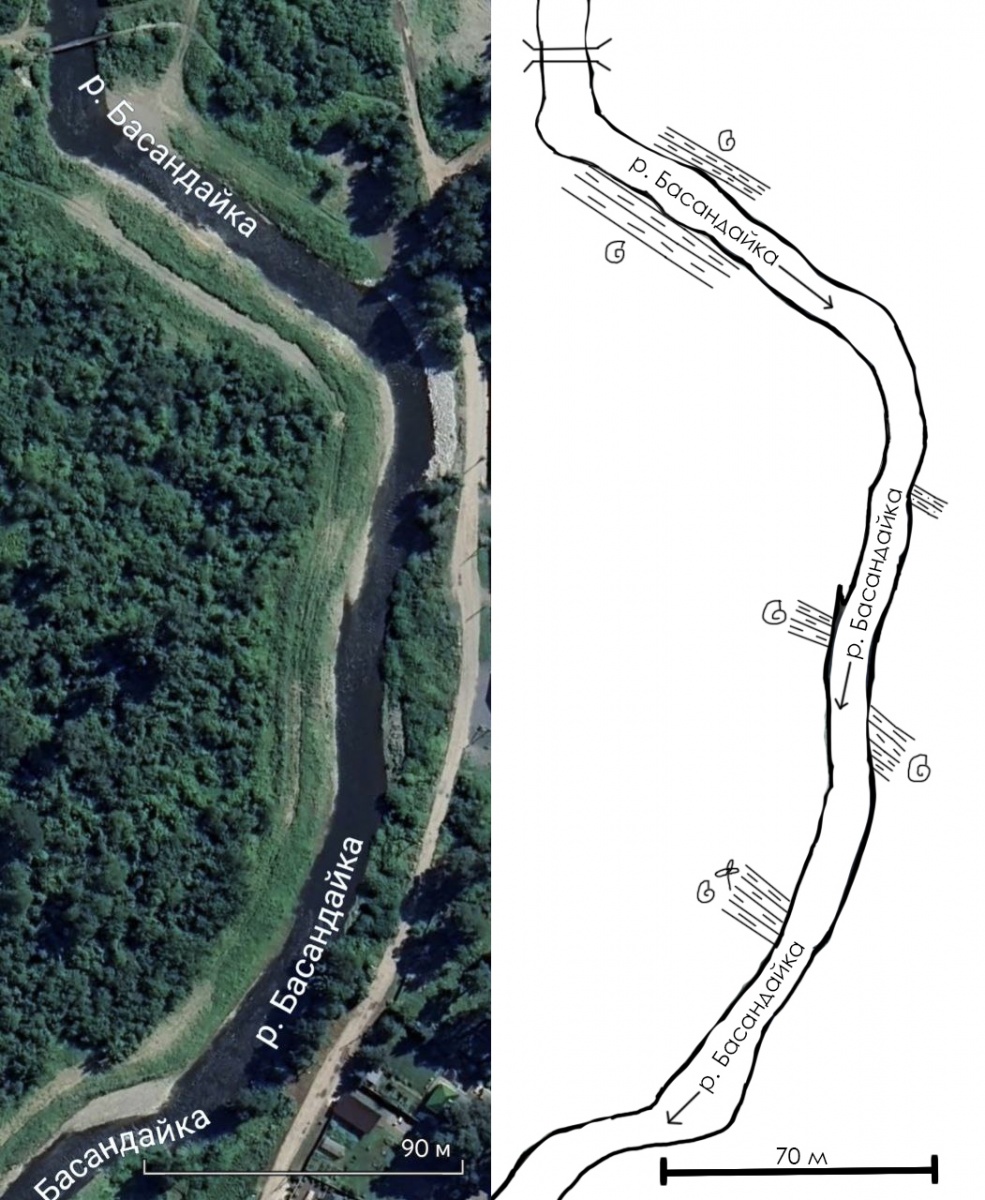 Приустьевая часть долины реки Басандайки представлена выходом пород басандайской свиты - глинистые сланцы и алевролиты.