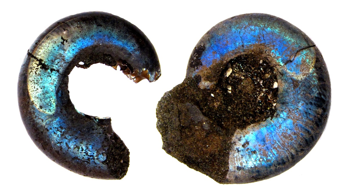 Так как обломков с такой окраской было довольно много, чувствовалось, что в этом есть какая-то закономерность. Тогда я по глубокой палеонтологической наивности думал, что это прижизненная окраска и аммониты так и плавали в юрском море – перламутровыми и переливающимися всеми цветами радуги. Позже оказалось, что это внутренние слои раковины, снаружи раковина аммонитов, как и наутилусов, была покрыта белым призматическим слоем с темными полосами окраски (форма которой у аммонитов и наутилусов заметно различается). Но о том, чем вызвана такая закономерная окраска внутренних, не видимых снаружи слоев, откуда берутся эти цветные полосы, не говорилось ни в одном учебнике, ни в одной публикации. Пришлось это выяснять самому. И лишь после того, как я стал заниматься отпечатками мускулов аммонитов, стало ясно, что это за цветные полосы и откуда они взялись.