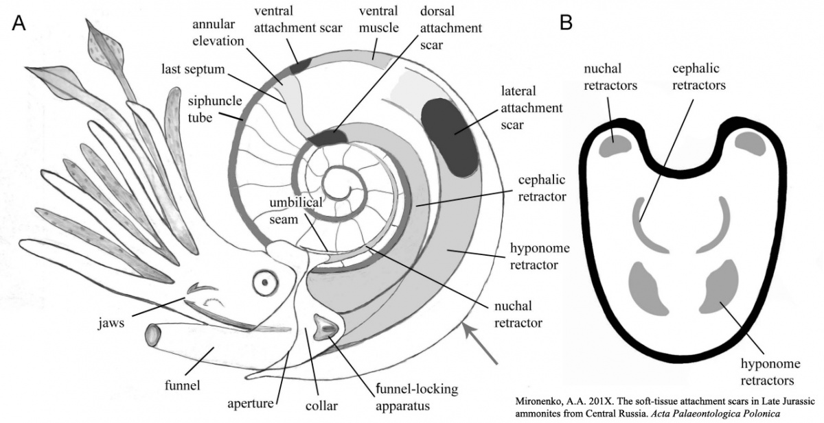 Mironenko, A.A. 2015. The soft-tissue attachment scars in Late Jurassic ammonites from Central Russia. Acta Palaeontologica Polonica
