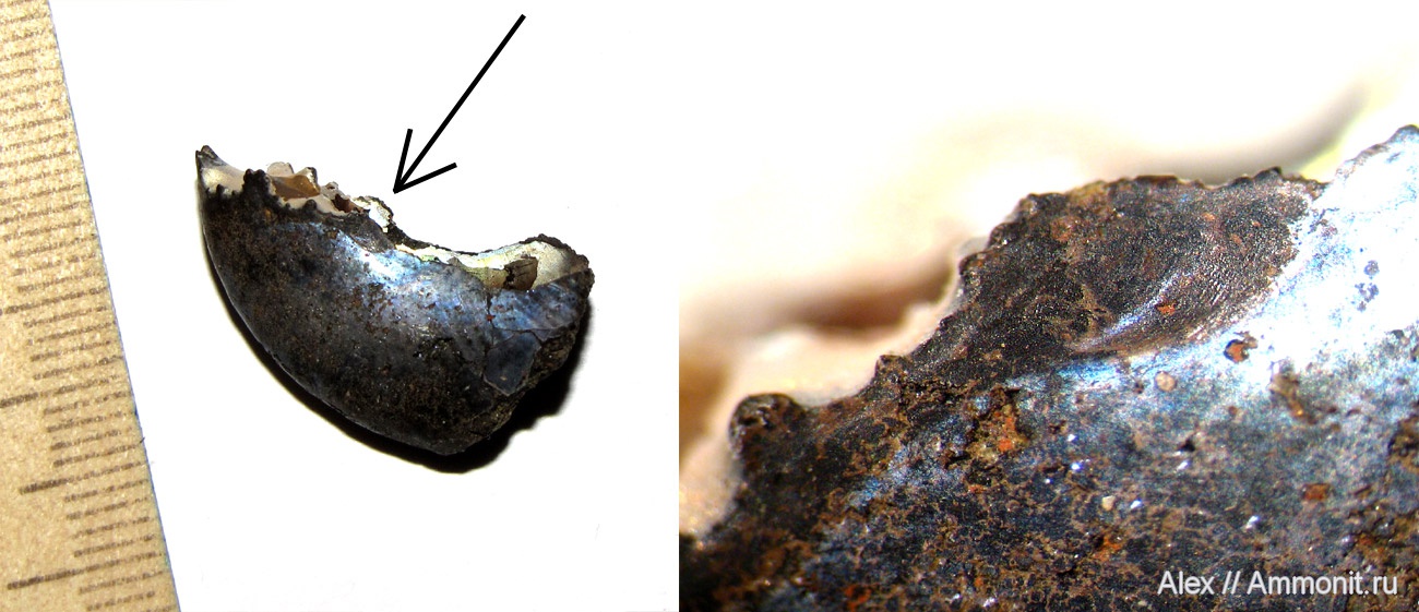 Конечно, пока передние латеральные синусы известны лишь у одного рода аммонитов (Kachpurites), у палеонтологов будут появляться сомнения – свойственны ли эти структуры всем аммонитам? Верна ли их интерпретация? Надеюсь, что со временем нам удастся найти несомненные передние синусы и у других аммонитов. Пока я не нашел их даже у Garniericeras, но тут дело в том, что эти синусы и у кашпуритов сохраняются редко, а раковин гарниерицерасов с целыми жилыми камерами в моем распоряжении куда меньше, чем раковин кашпуритов (в Подмосковье жилые камеры Garniericeras практически не сохраняются, у нас в этих слоях все слишком сильно переломано, их много лишь на Черемухе).