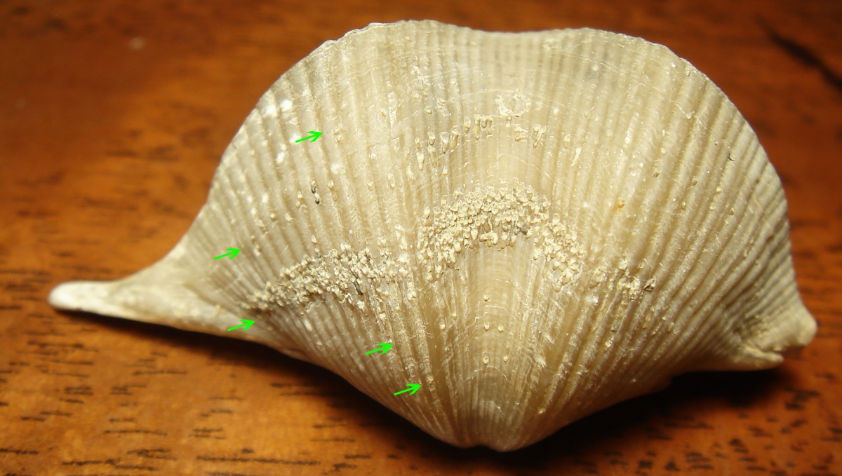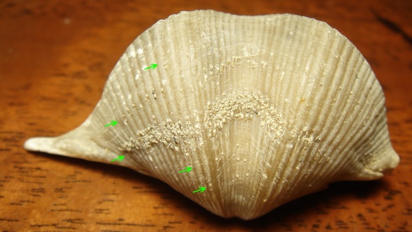 3) "Отступ" поселенца от краев раковины на одинаковое расстояние по всей коммисуре раковины (точки соприкосновения), как следы совместно проживания.