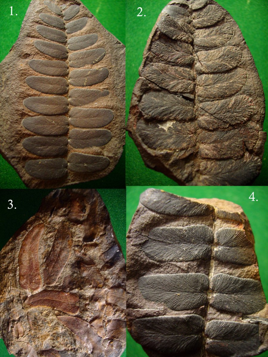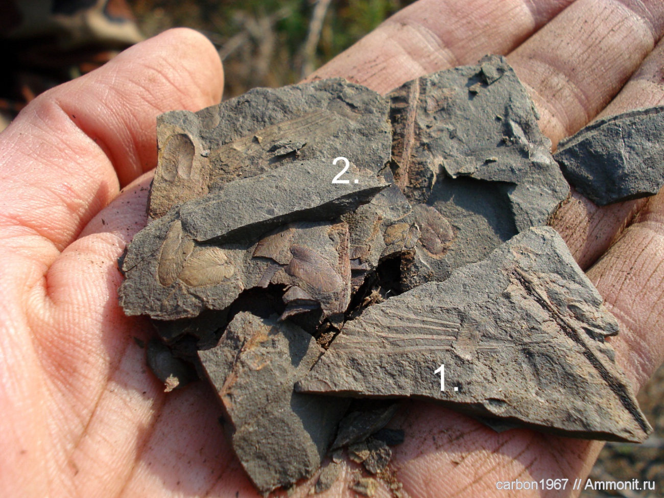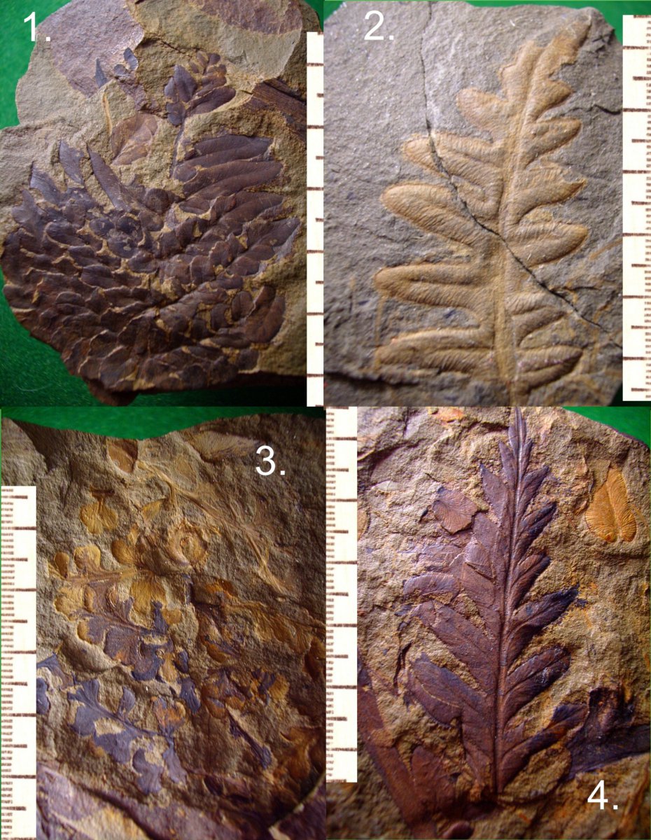 многочисленная группа растений. На данном местонахождении насчитывает около полутора десятков видов разных семейств. И ещё один интересный факт этого местонахождения .По второй прослойке сидеритовых конкреций ( соответствующих угольному пласту i-3в ) проходит граница жизни вида Neuropteris gigantea f. arcuata см. фото фиг.3