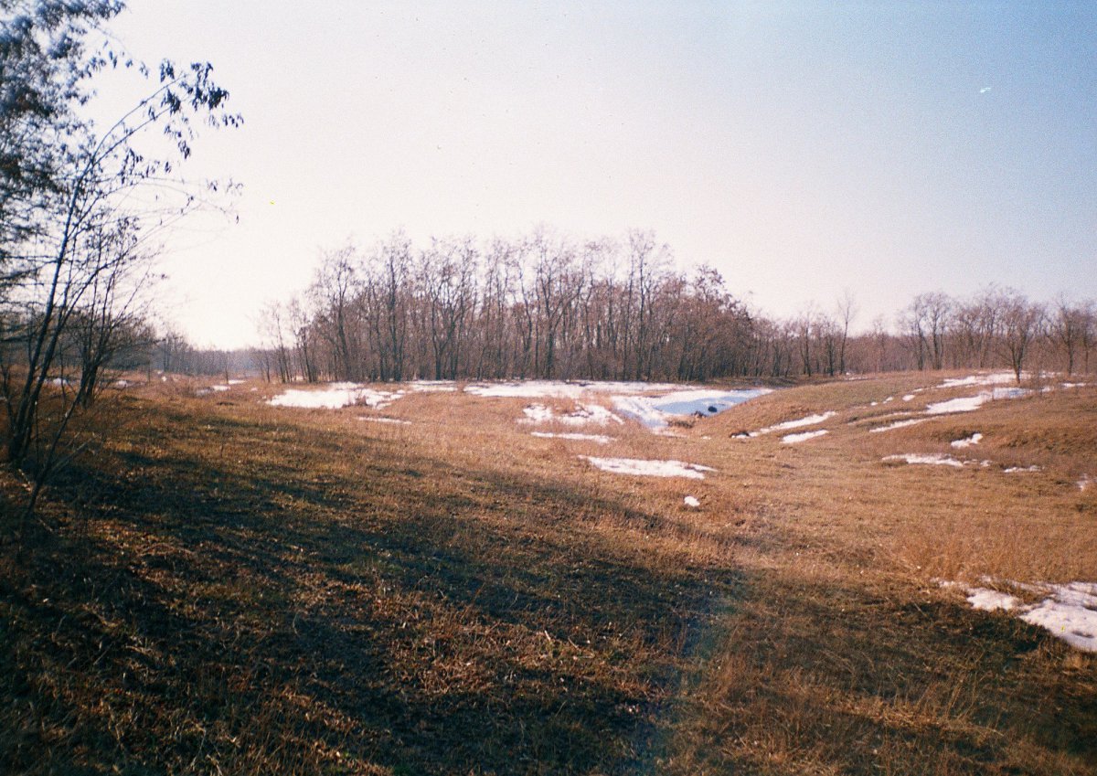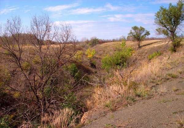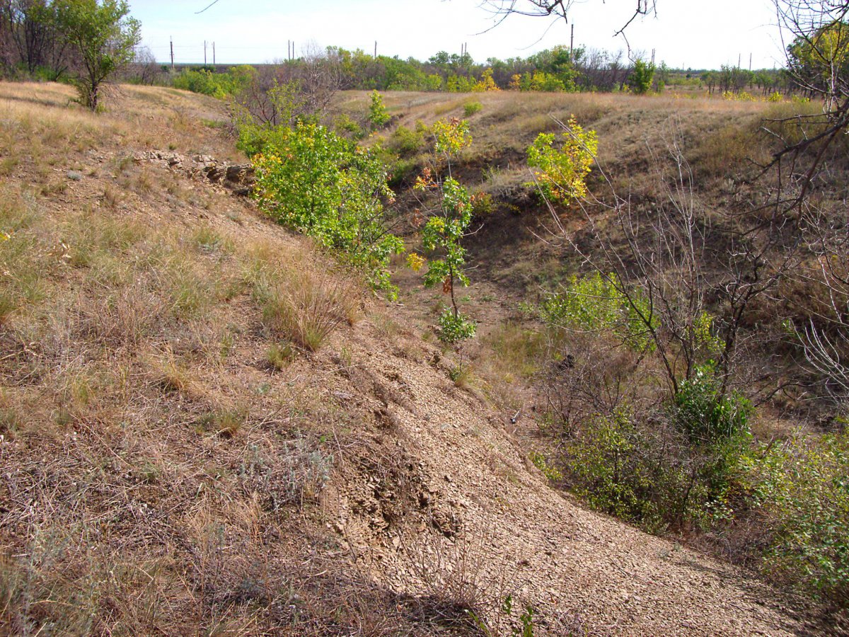 фото - 1. Верховья балки "лесная". Снимок сделан в 1997 г. в момент "открытия" сезона и местонахождения. О бследовав балку, я пройдя по левому "рукаву" вышел на последний ( как выяснилось позже ) отвал местонахождения "1043 км.".