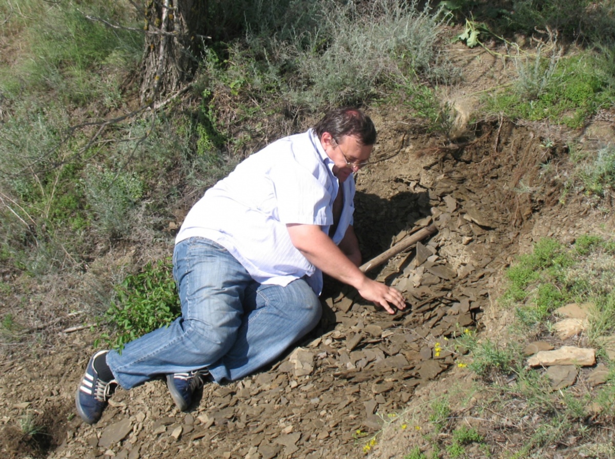 Первоотерыватель местонахождения древнейших насекомых на территории бывшего СССР и скромный автор этой публикации за раскопками слоя содержащего остатки насекомых и багатейшую флору карбона .