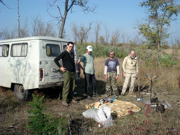 Экспедиция ПИН РАН с лева на право ( лаборатория артропод Башкуев А., Василенко Д., Аристов Д. ) и БИН РАН ( лаборатория палеоботаники Гоманьков А. ).