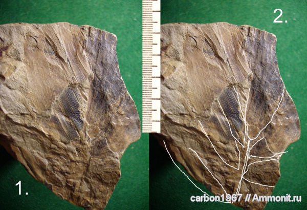 фиг.1 - изолированный лист ( филлодий ) Lepidodendron sp.