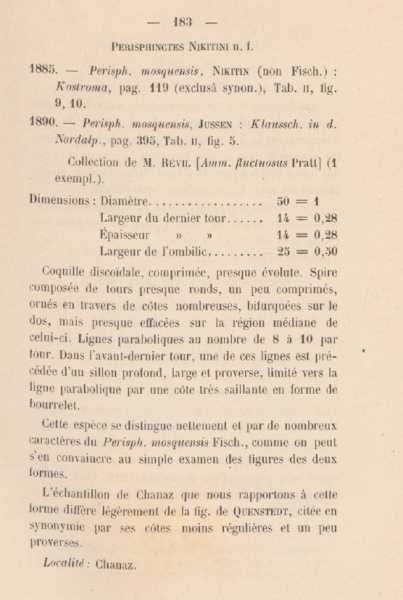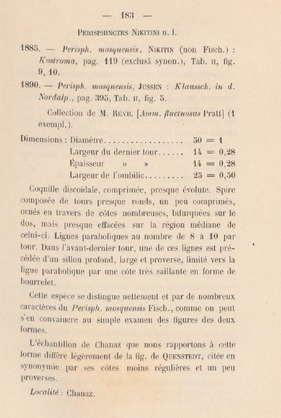 Вид описан в статье Parona et Bonarelli «SUR LA FAUNE DU CALLOVIEN INFÉRIEUR (CHANASIEN) DE SAVOIE», опубликованной в сборнике «Mémoires de l'Académie des sciences, belles-lettres et arts de Savoie» в 1895 году. Отдельных трудов стоило разыскать скан этой книги на просторах Интернета, но дело сделано, книга скачана – и на 183 странице ее читаем: