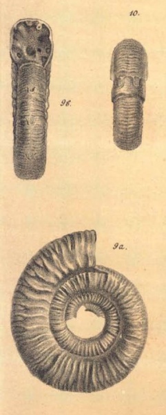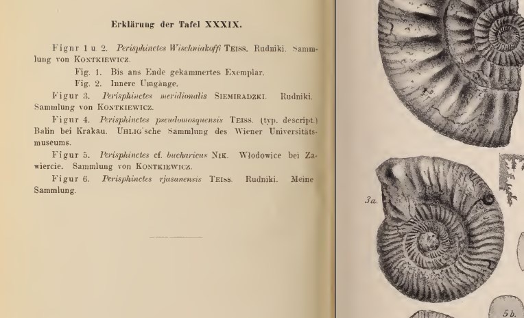 Второй аммонит, Perisph. mosquensis, Jussen, был уже легко с помощью нескольких кликов мышкой найден в книге «Beiträge zur Kenntniss der Klausschichten in den Nordalpen» Von Edmund Jüssen, 1890: