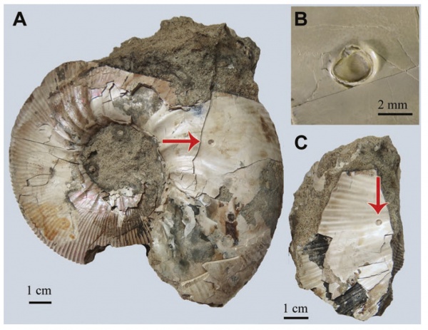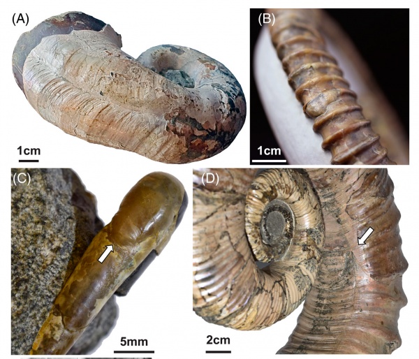 Фотографии гетероморфных аммонитов с прижизненными повреждениями, предоставленные Дмитрием Виноградовым (Vin117) добавили совершенно новую информацию в работу, посвященную палеобиологии гетероморфов Recent advances in heteromorph ammonoid palaeobiology, в которой я был одним из соавтров в большом международном коллективе. Ранее у этих таксонов аммонитов повреждения никогда не описывались и не изображались.
