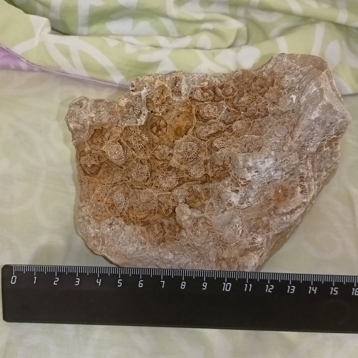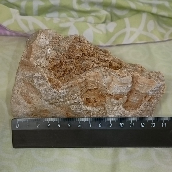 Это карбонский коралл petalaxis (Московский ярус). В меловом периоде его не существовало, так как он вымер в пермском переоде. Большое количество замковых брахиопод с обломками морских ежей.