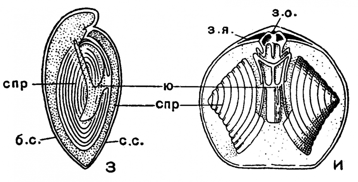 У некоторых брахиопод лофофор поддерживается известковым скелетом, строение которого различается у разных отрядов.