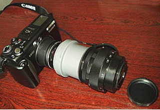 Представленный в качестве примера в данной статье фотоаппарат - обычный цифрокомпакт. Объектив, которым модернизируется камера - съемный объектив для пленочных зеркалок типа Зенита. А то, что уважаемый Smesh изготовил из сливной трубы - это так называемая разгонная втулка. | ||||||