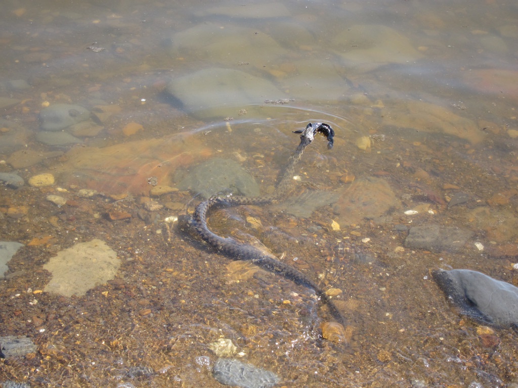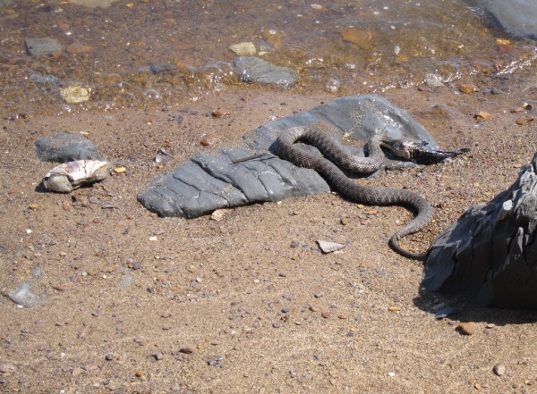 Благодаря близости воды на берегу практически не ощущалась жара, хотя в этот день температура воздуха была выше, чем до этого, когда мы буквально плавились в Дубках. На берегу и под водой ползали и плавали многочисленные змеи, охотящиеся на рыбу. От нас они старались держаться подальше.