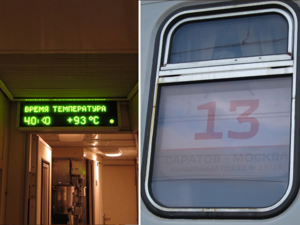 Обратно мы ехали в вагоне номер 13 и в самом начале пути там было не просто жарко, а очень жарко. Не знаю, правду ли показывал термометр в вагоне, или он слегка сдвинулся от перегрева, но по ощущениям это было очень похоже на правду ))