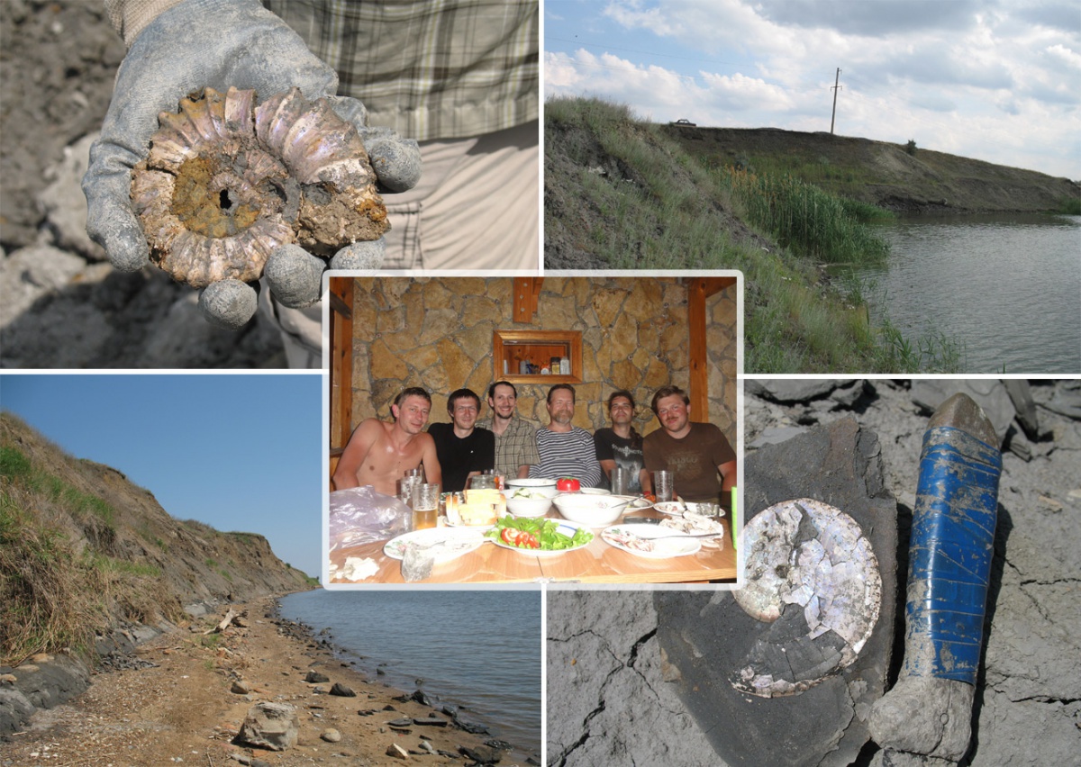 Но это было во второй день нашей экспедиции, а в первый мы посетили заброшенный карьер Дубки, известный своими прекрасными верхнеколловейскими аммонитами. Евгений и Андрей встретили нас на вокзале и отвезли в Дубки, так что мы меньше чем через час после прибытия в Саратов уже приступили к поиску аммонитов.