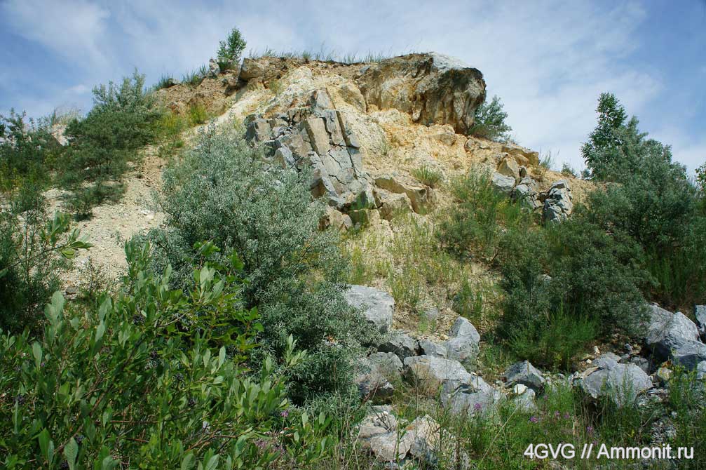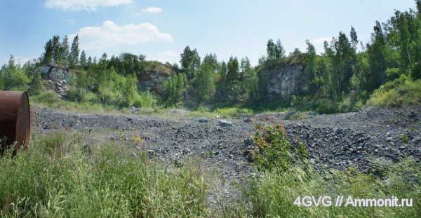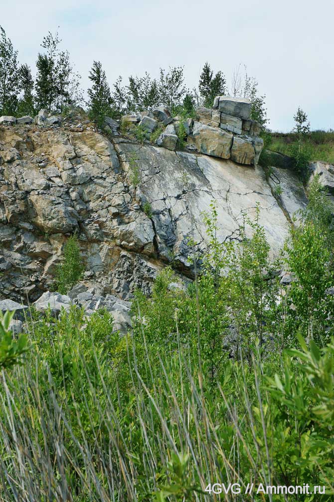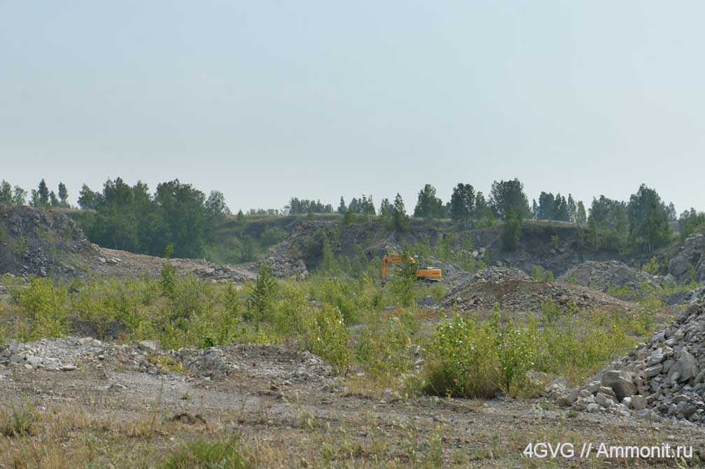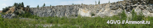 Заложен карьер достаточно давно, по дну успели вырасти небольшие деревья: для сведения, разведаны федоровские известняки в 1934-1935 гг., сырье было признано годным для производства извести и флюса. Зайдя на территорию я углубился за небольшую березовую поросль, дабы не мешать работе людей (и чтобы люди не мешали моей). Прошел вдоль стенки карьера практически до самого края. И опять только плиты и блоки безо всяких следов. В конце концов, наткнулся на полосу, вот они – следы древней жизни.