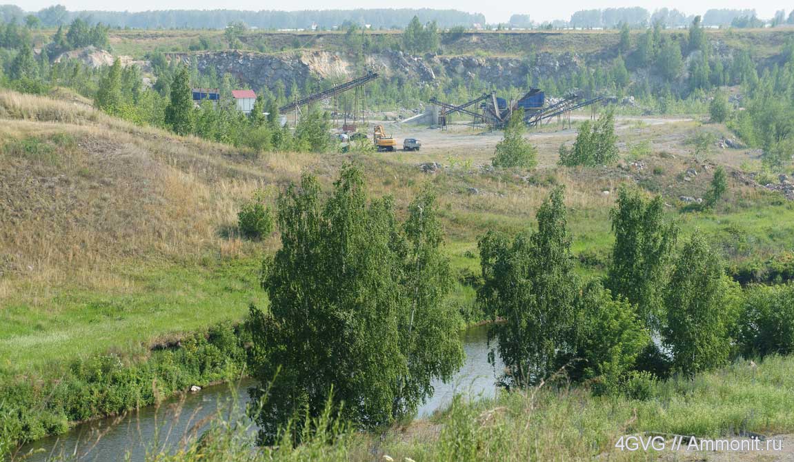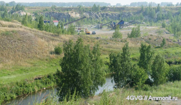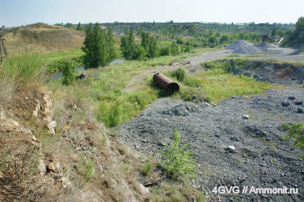 Карьер расположен по обе стороны реки Миасс. Небольшая часть (для удобства дальше в описании я буду называть его "малым") - на правом берегу и основная, около километра в длину - на левом (пусть зовется "большим"). Дойдя по правому берегу до первого карьера, был слегка разочарован: я конечно прозвал его по себя «малым», но не настолько же! По сути это вскрытая стенка небольшой горы.