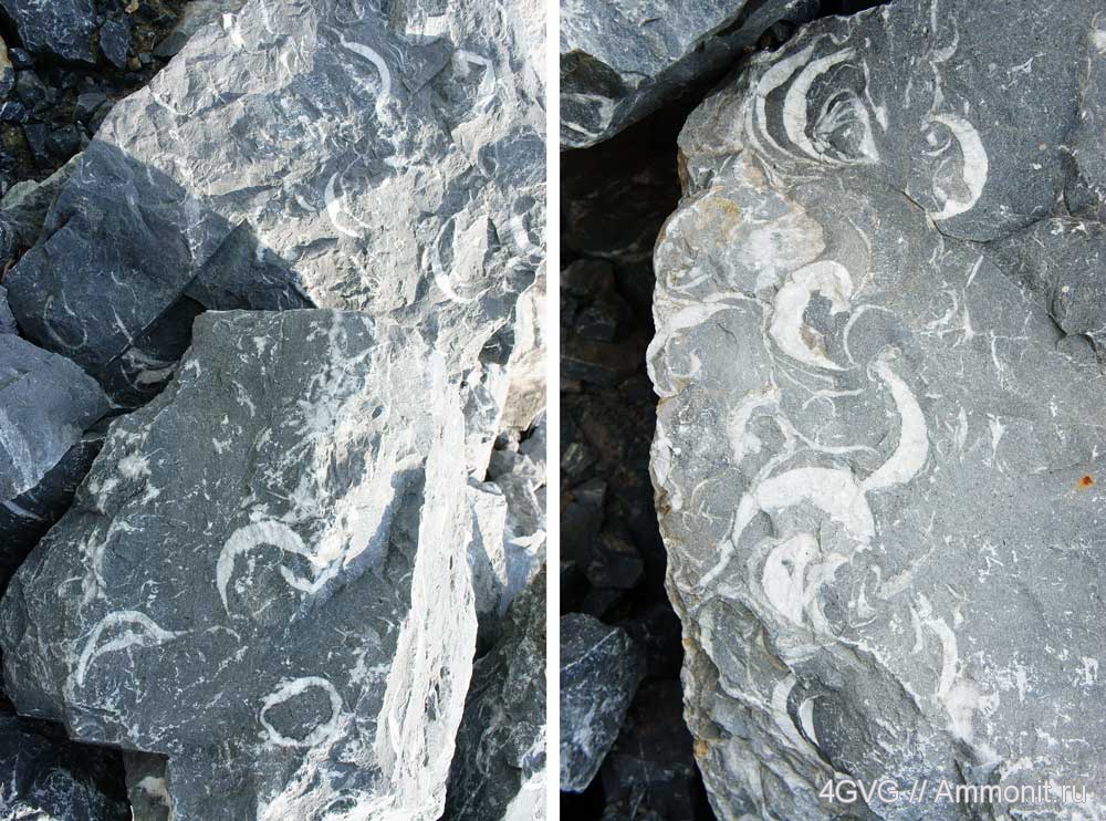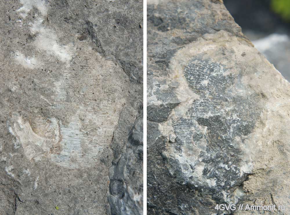 На левой стороне попадается известняк более светлый – серый, мраморизированный,