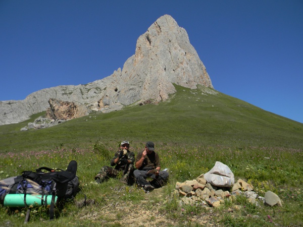 Хорошо начало, а что же будет там, на Тхаче? От нафантазированного счастья голова шла кругом. На следующий день мы подобрались совсем близко к заветной цели. Палатки разбили на Княжеской поляне, на краю красивейшего цирка – еще день и мы будем на седловине, разделяющей Большой и Малый Тхачи. Там-то на больших осыпях будет где разгуляться!