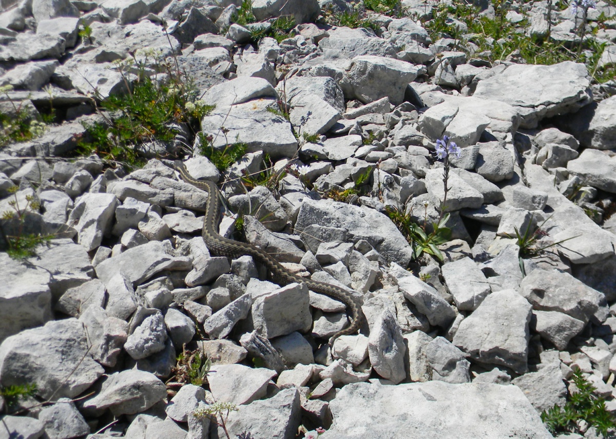 Кораллы нам тоже попались, а куда без них на коралловом рифе? В процессе ползания по известняковым «развалам» столкнулись «лицом к лицу» с хозяйкой горы – кавказской гадюкой. Она проявила нежелание с нами общаться и позировать перед объективом. На каждую попытку аккуратно развернуть рептилию ледорубом, та отвечала грозным шипением и броском в сторону обидчика. Пришлось довольствоваться тем, что успели отснять.