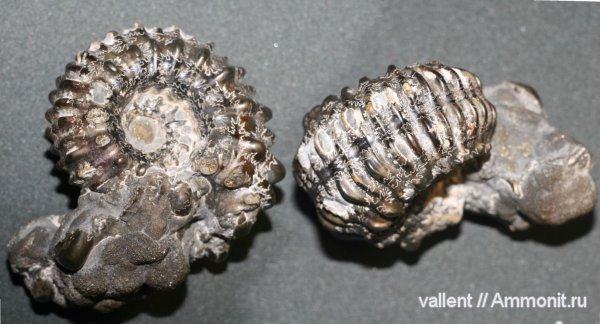 Очень хорошо видны отпечатки на пиритовом ядре аммонита Epicheloniceras subnodosocostatum.