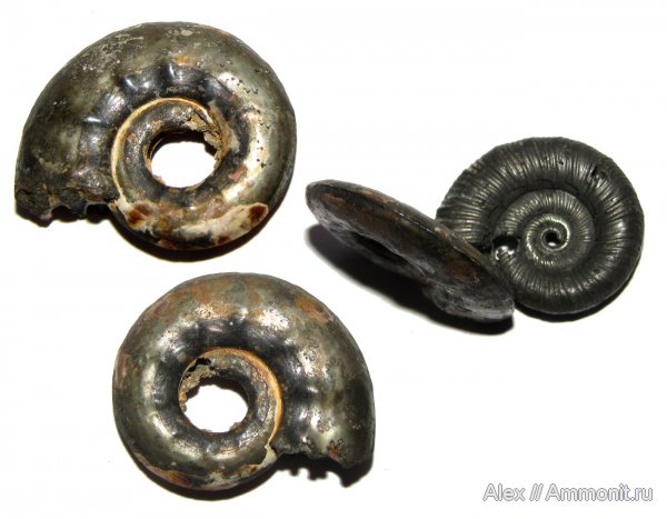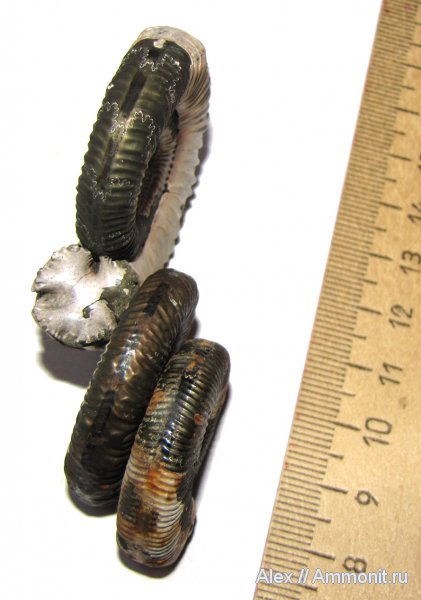На этом фото - три раковины Binatisphinctes sp. с вентральными полосками.