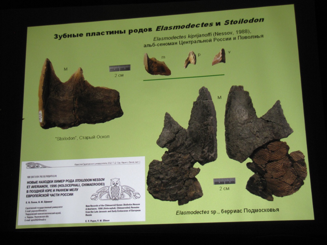12 октября, в пяницу, состоялась девятая (вторая в этом сезоне) лекция Общества Любителей Окаменелостей (ОЛО). Тема лекции - "Мезозойские химеры - знакомство". Докладчик - ведущий в нашей стране исследователь мезозойских хрящевых рыб - Евгений Попов из Саратовского Государственного Университета (СГУ).