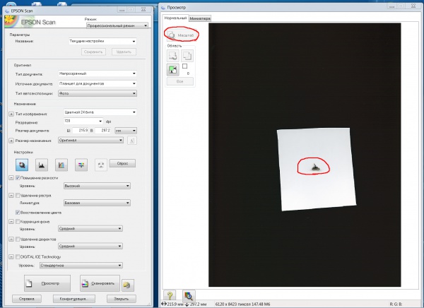 Все начинается с окна предварительного просмотра. В нем мы заключаем в строгие рамки нашу модель и далее: сканируем-сканируем-сканируем с максимально возможным разрешением! Для чего спросите вы? А для того, что бы получить максимально возможное качество! Впоследствии, даже если вы уменьшите разрешение фотографии, качество её останется на хорошем уровне, и вы не увидите небо в клеточку, то бишь в квадратики.