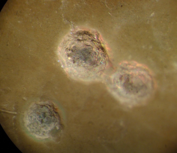 Я бы не сказал, что это сколы. Это скорее высверливание-выедание, но может быть на самом деле края подрастворены. | ||||||