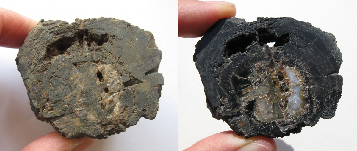 Лучше всего такая методика подходит к образцам фосфоритизированной древесины. На обработку ниже показанных образцов ушло от силы 5 – 6 часов.