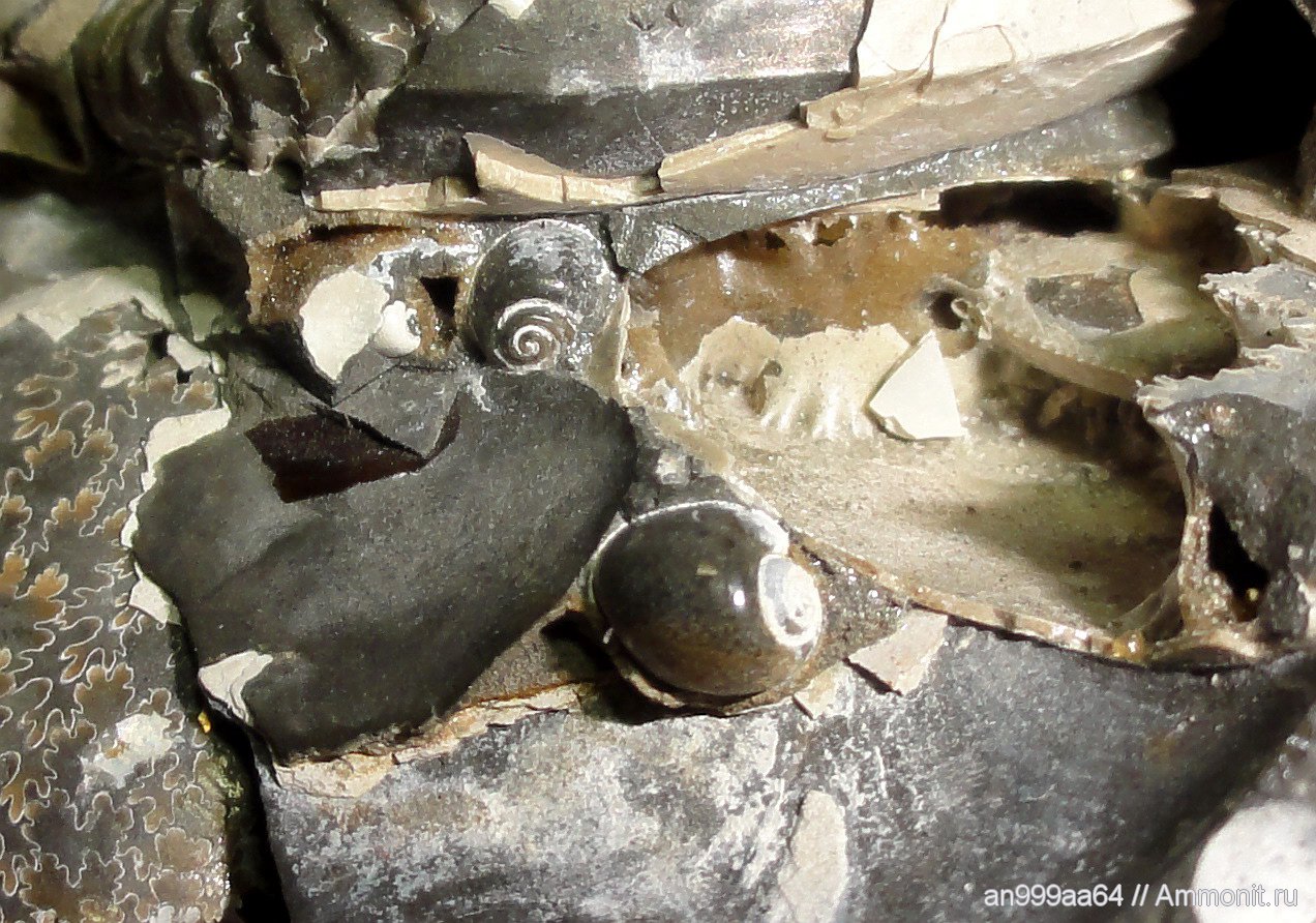маленькие гастроподы размером 2 и 3 мм обнаружены на аммонит Deshayesites deshayesi на более хорошее качество моя мыльница не способна