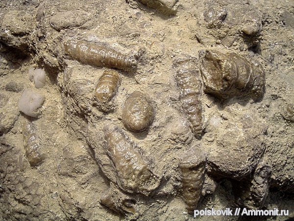 Конгломерат содержит множество разнообразных гастропод, встречаются кораллы и обломки иной фауны. Рельеф раковин гастропод сглажен, у некоторых - стерт (в процессе окатывания) до ядра.