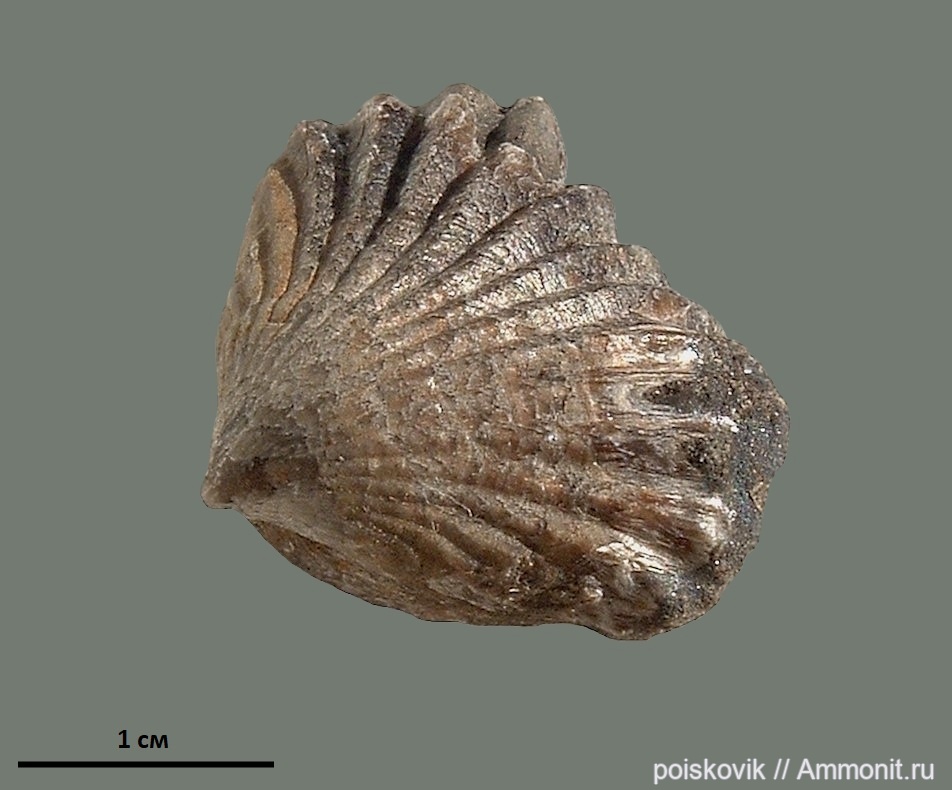 Брахиопода с частично сохранившейся перламутровой раковиной. Берриас. Размеры: 2,3см Х 2,1см