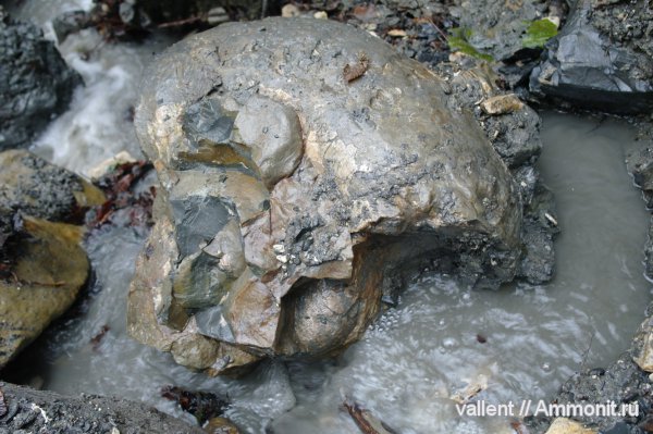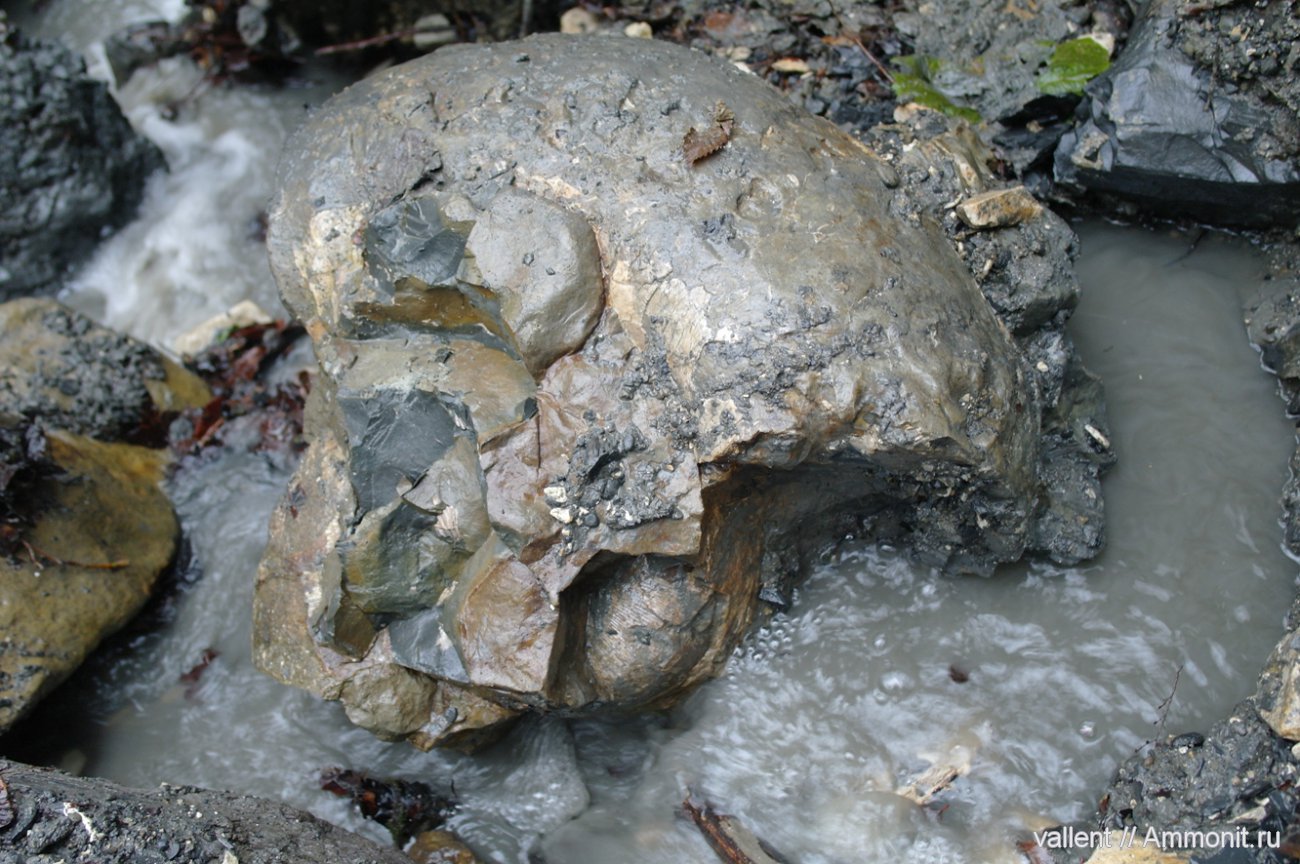 Кусок аммонита вымыло паводковыми водами. Размеры от места предполагаемого пупка до внешнего края последнего оборота около 650мм. Если бы аммонит был целым, то, вероятно, имел бы в поперечнике около 1300мм!