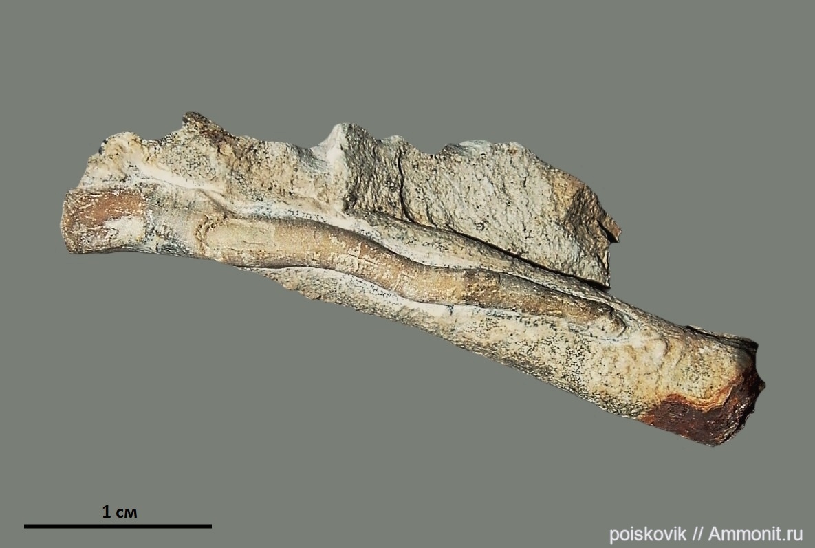 Червеобразная фоссилия - это серпула, они бывают очень большими, например: Serpula sp.. Виден и шов по "спинной стороне" и стадии роста.