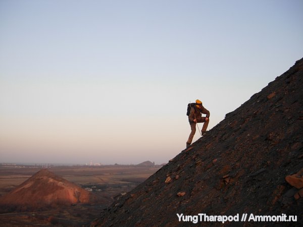 Но это не останавливает автора от поисков лучших образцов карбоновой флоры, ведь, хотя самые крупные образцы скатились вниз и валяются у подножия террикона, хорошие находки можно встретить и наверху.