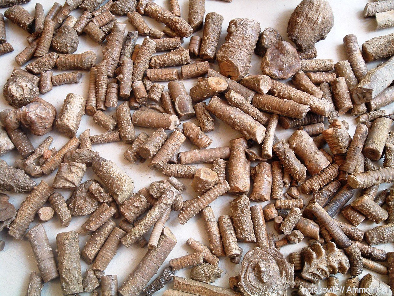 Фрагменты стеблей морских лилий из урочища Менистер в районе Балаклавы. Диаметр самого крупного фрагмента - 3см!