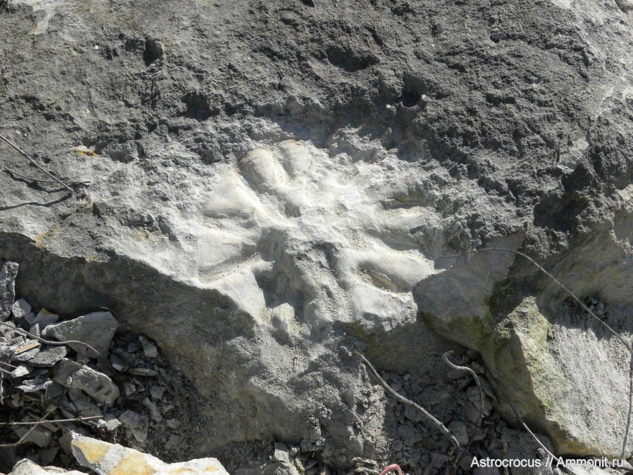 Слева снизу виден обломок породы с фрагментами этой же фоссилии.
