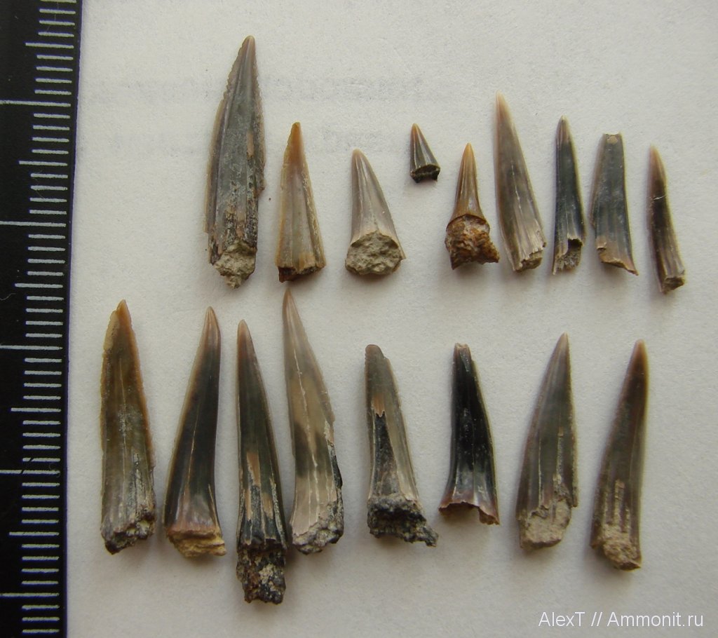Зубы, в основном, попадаются в нижней части карьера (там, где граница готтерив-апт) не in situ. Похоже, что большая часть их действительно вымыта из глин среднего апта (хотя в самих глинах in situ эти зубы мне не попадались). Возможино ли такое, что часть из них относится к готтериву? | ||||||