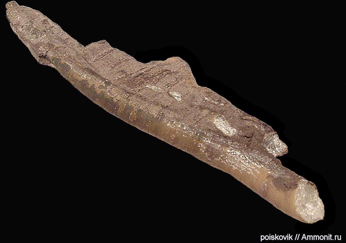 Замещенный кальцитом след моллюска-древоточца в фрагменте окаменевшего дерева. Альб.