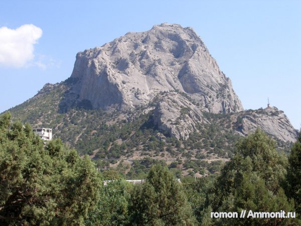 До Карадага - далеко, да и не в этом дело... В районе Судака развиты рифовые, точнее - биогермные (кораллово-водорослевые) верхнеюрские (оксфорд - титон) массивы, окруженные (в общем и цплом) предрифовыми и зарифовыми глинисто-карбонатными фациями; они - слоистые и относительно легко денудируются, а биогермные массивы "торчат" в виде гор и скал... Севернее Судака есть небольшое поле развития среднеюрских даек основного состава, но это так себе, тут - экзотика, и рельефа не делают... | ||||||