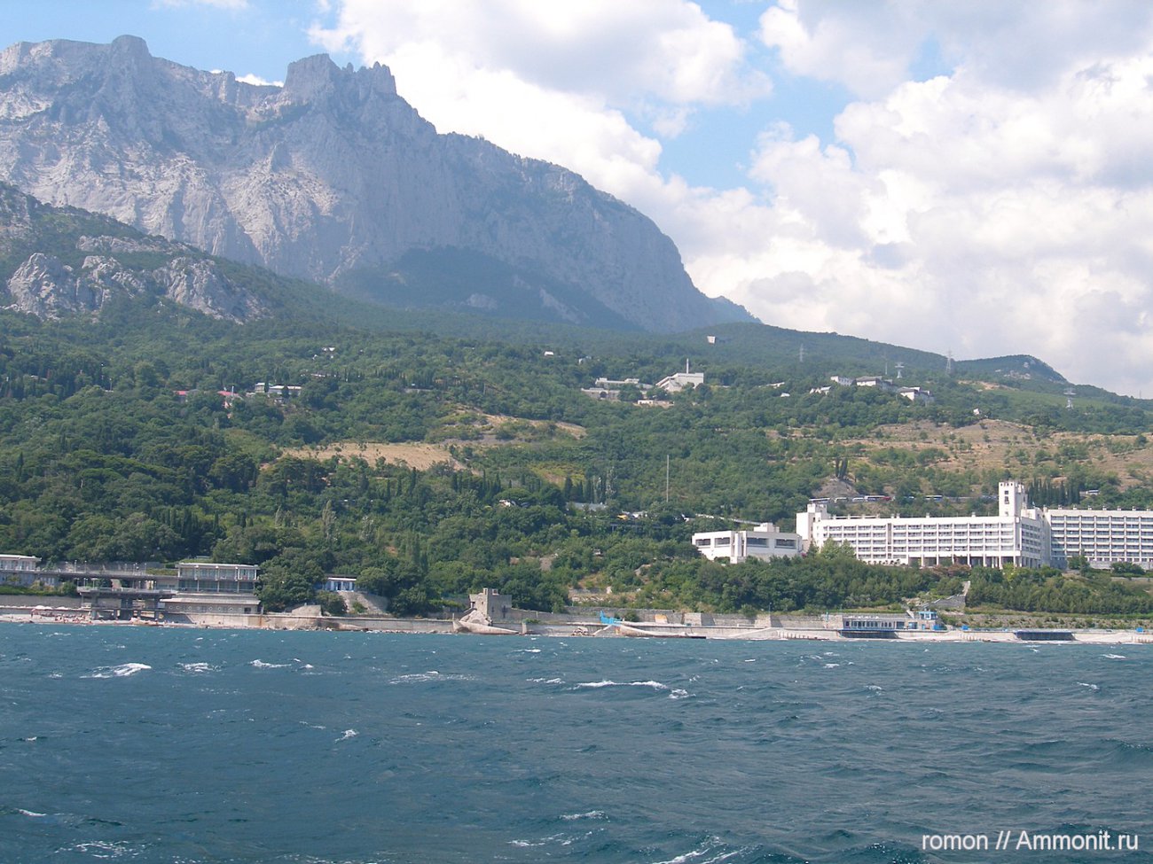 Вершина Ай-Петри несколько отличается от пород, слагающих весь массив. Она сложена однородным плотным известняком, в толще его практически не наблюдается слоистости. Зато кое-где можно рассмотреть интересные окаменелости в виде трубочек и веточек - ископаемые кораллы. Самая же макушка Ай-Петри с ее знаменитыми зубцами - огромный коралловый риф. Кораллы живут в море на небольшой глубине, однако мощность ай-петринского рифа превышает 600 м. Это свидетельствует о том, что дно древнего моря в начале верхнеюрского периода медленно опускалось, а кораллы, чтобы выжить, все время достраивали свои постройки.