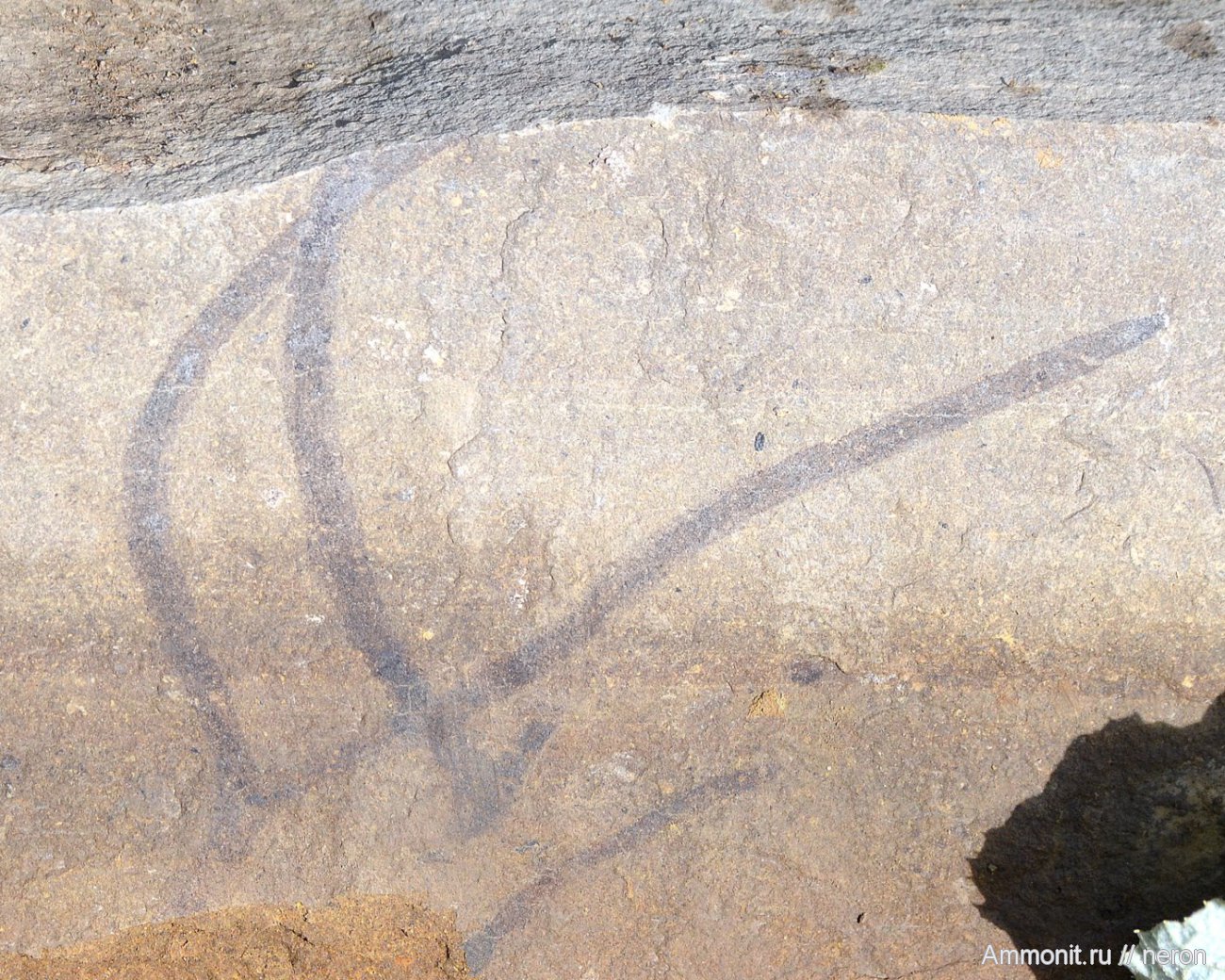 Подобных водорослей есть еще несколько отпечатков. В том числе и еще один с брахиоподой. Вот только признаков, как отличить водоросли от плауновидных, я не знаю. Сначала было похоже на ноги паука, когда лежало среди камней.) | ||||||