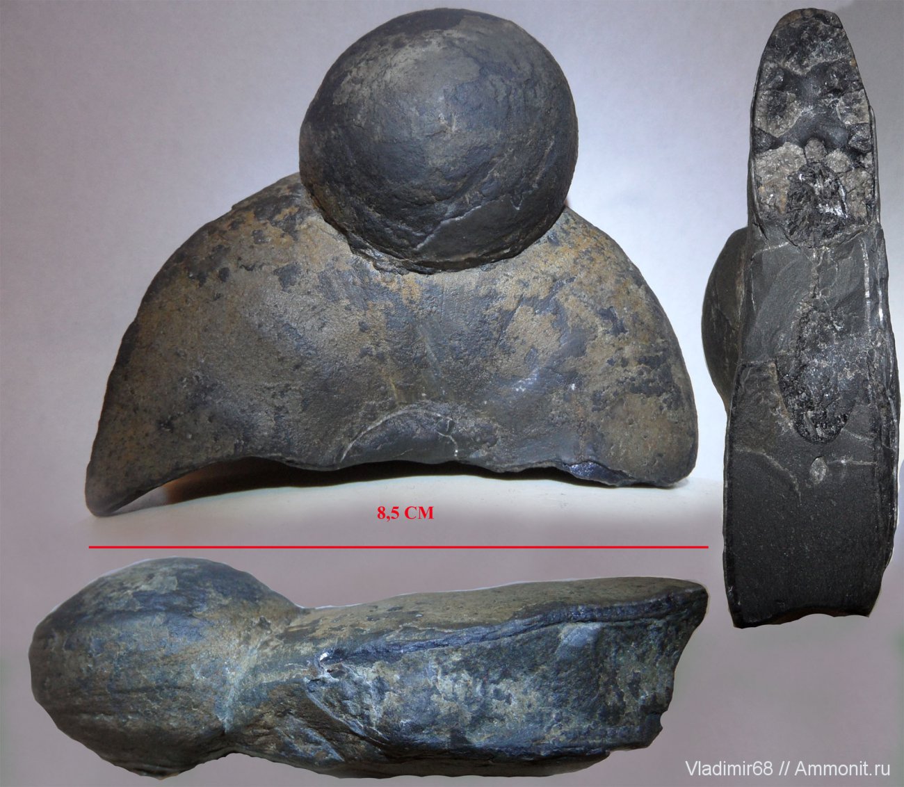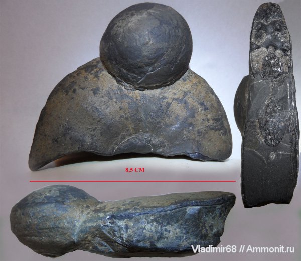 Вот это интересная штука! Причиной появления этого нароста могла быть двустворка - обрастатель, они часто селились на раковинах аммонитов. Но на слепок раковины это не похоже, скорее похоже на конкрецию, сформировавшуюся вокруг этой двустворки или какого-то другого объекта - может быть даже торчавшего из раковины чьего-то зуба.