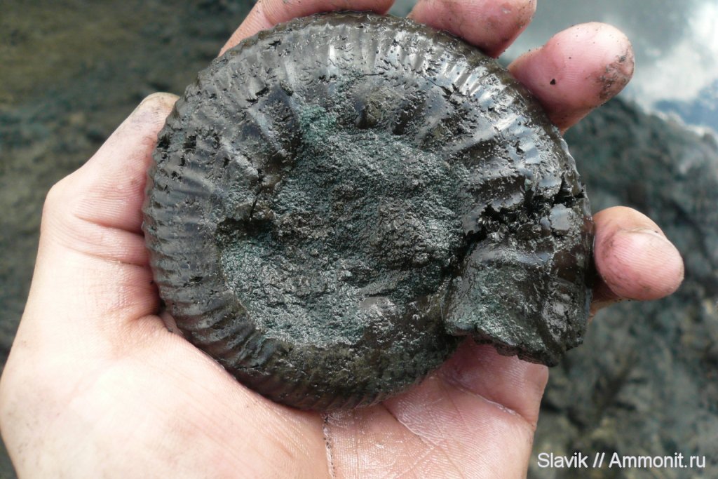 Первый такой дорсопланит, которого удалось извлечь и довезти домой целиком. Диаметр 8см.