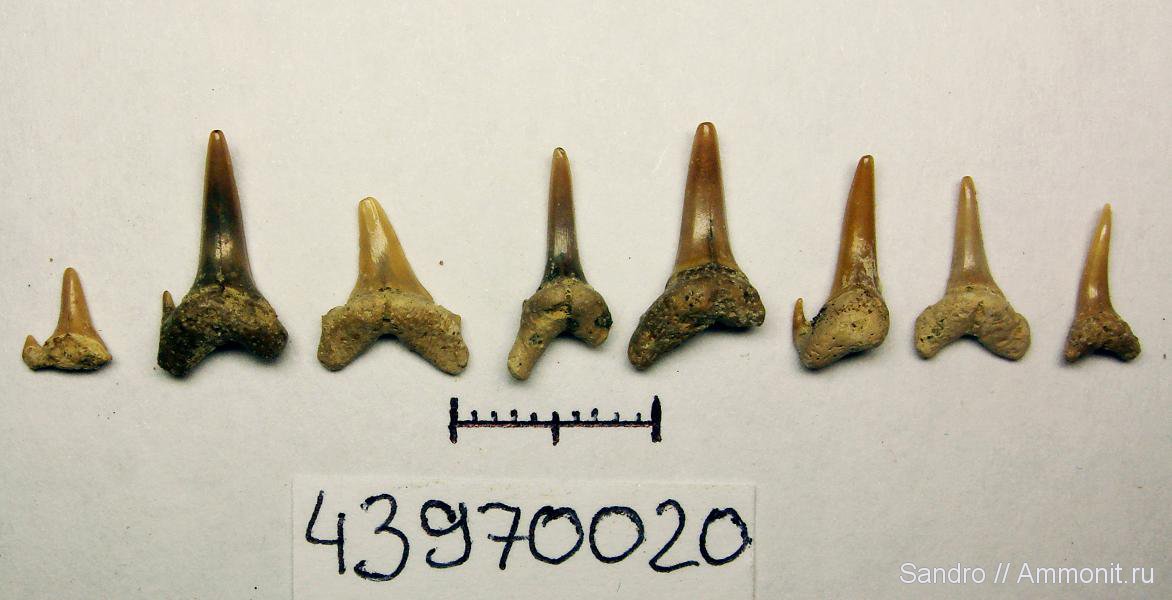 Несмотря на явную стойкость дентина акульх зубов верхушка коронки у всех отколота или сильно окатана.