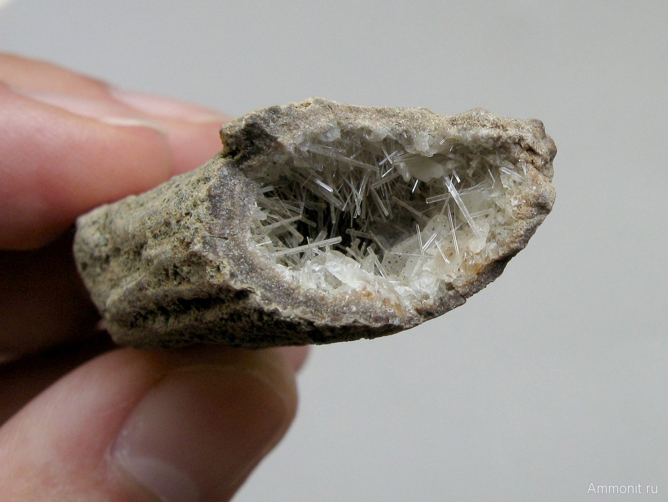Я тоже, кристаллы в полостях разных окаменелостей - явление не редкое, но обычно это невзрачный кальцит. А тут кристаллы очень красивые и необычные. | ||||||