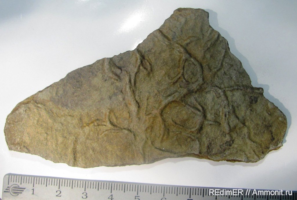 Это одна из форм сохранности подольской Harlaniella и пример её массовости в некоторых слоях. Изначально, харнланиелла интерпретировалась как след, сейчас достоверно установлено, что это останки трубчатых организмов, родственных Vendotaenia. Какова природа харланиеллы и вендотении? Скорее всего водоросли. | ||||||