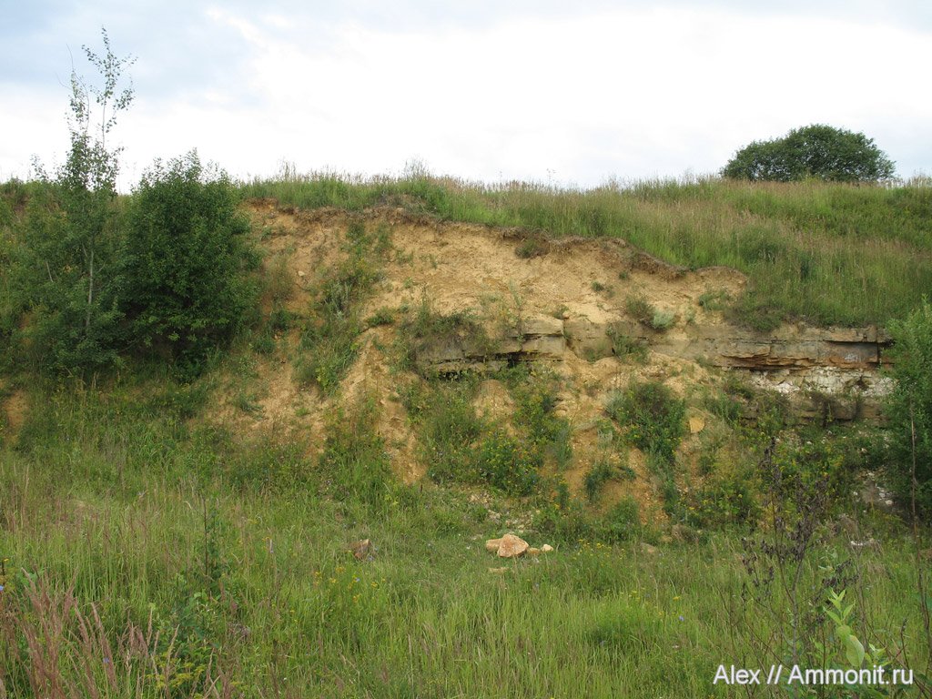 Стенка заброшенного карьера в Русавкино. Эту фотографию можно принять за снимок другого местонахождения - в Гжели и это не удивительно - в этих местах выходят на поверхность одни и те же слои касимовского и гжельского ярусов верхнего карбона.